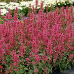AGASTACHE 'Morello' PP29527. 27-33" tall, 22-24" spread, full sun, early summer-early fall bloom. Spikes of tubular raspberry-pink flowers are sweetly scented. Foliage has a minty fragrance when crushed. Easy to grow. Shows good mildew resistance. Attracts butterflies, hummingbirds & is bee friendly. Deer resistant. Zones 5-10. Potted in 3" pot.