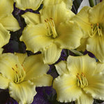 14" EM D Re F Ext 3" bloom. This daylily is similar in blooming behavior as the ever-popular 'Stella de Oro' but differs in terms of flower color and flower shape. Lemon yellow triangular-shaped flowers have a strong citrus smell. Starts blooming in early summer and reblooms until frost. Full Sun. Attracts butterflies and is bee friendly. Zones 3-9. 2/3 fan division, bareroot.