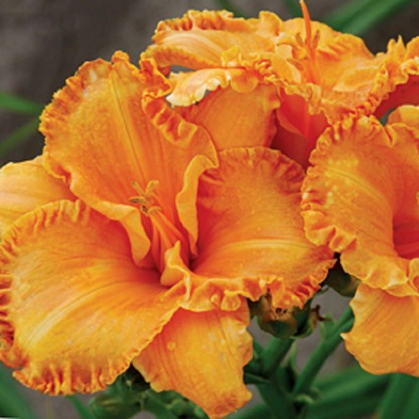 (Klehm) T 32" E D 6" bloom. Highly ruffled & veined burnt orange bloom with an unusual color blend of gold undertones. Full Sun. Attracts butterflies and is bee friendly. Zones 3-9. 2/3 fan division, bareroot.
