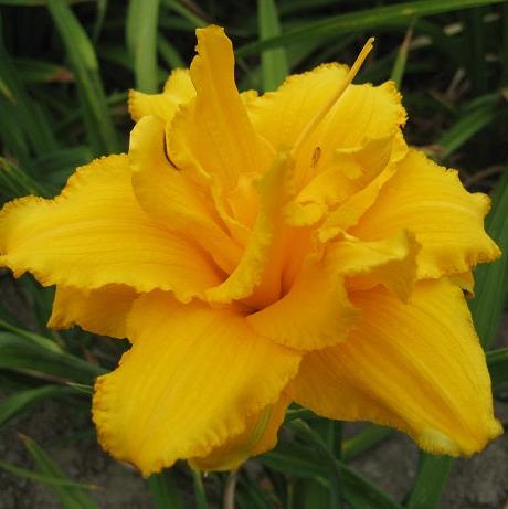 (Grooms) 20" EM D 4 ½" bloom. Double. Deep gold self with ruffled edges. Full Sun. Attracts butterflies and is bee friendly. Zones 3-9. 2/3 fan division, bareroot.