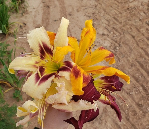 The Mahieu daylilies pictured represent a small selection of possible varieties in the mix.