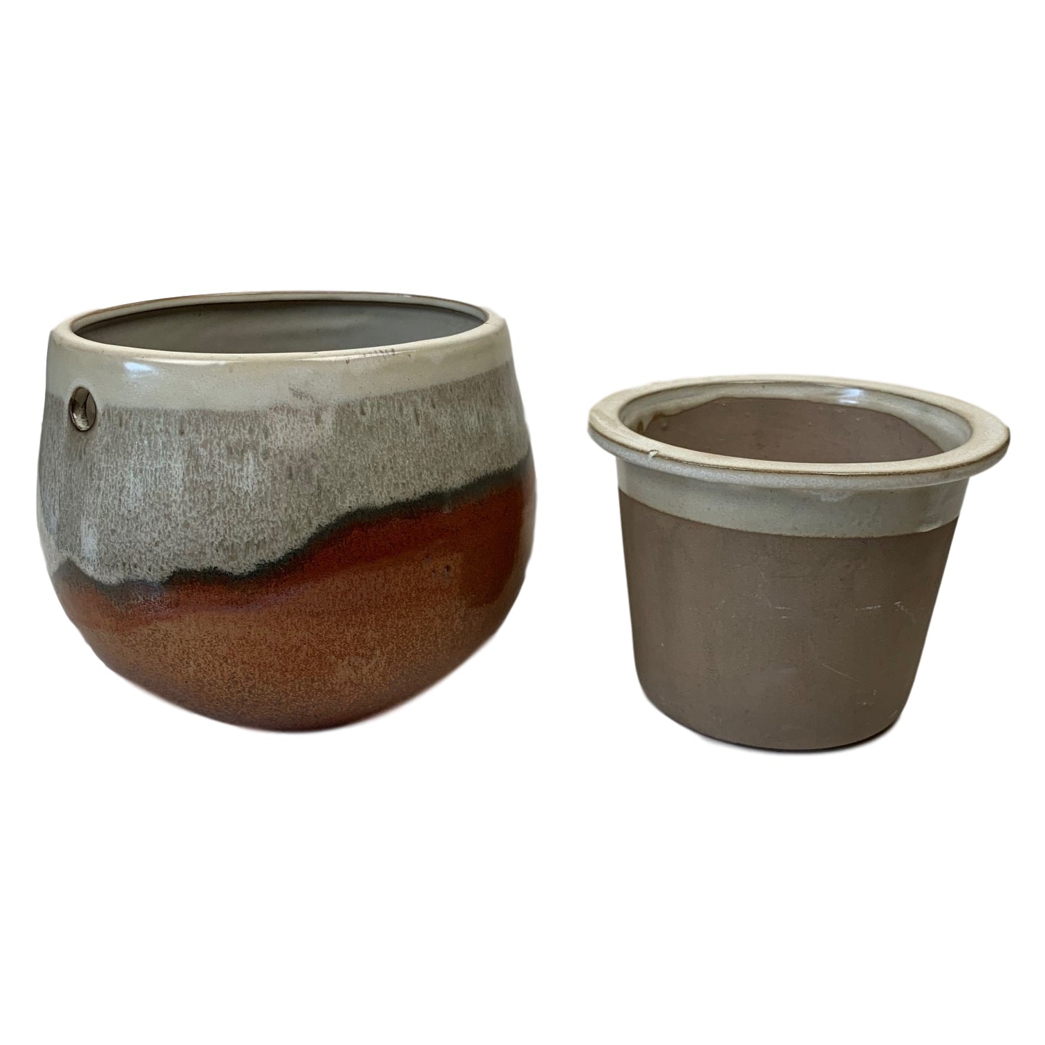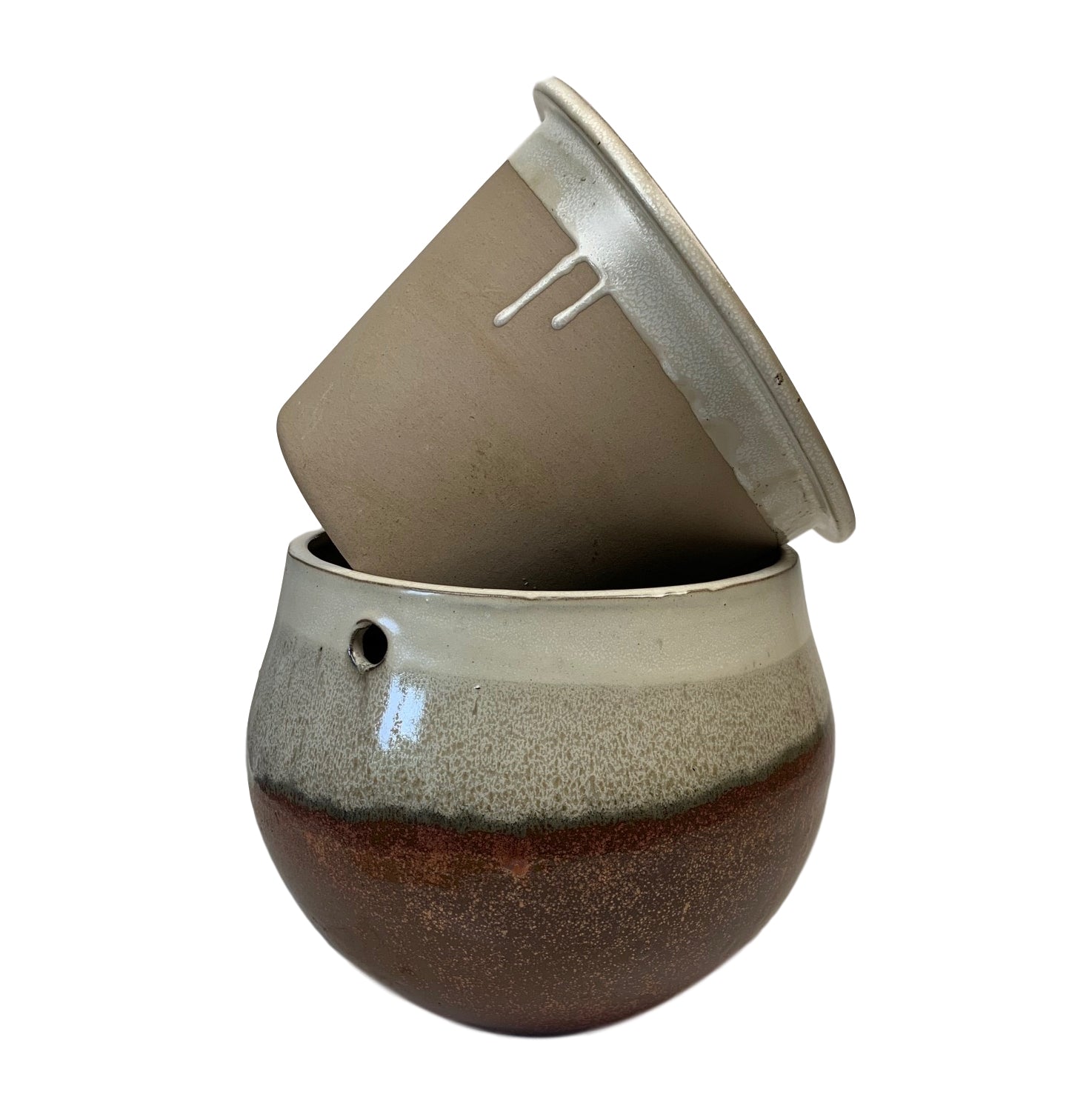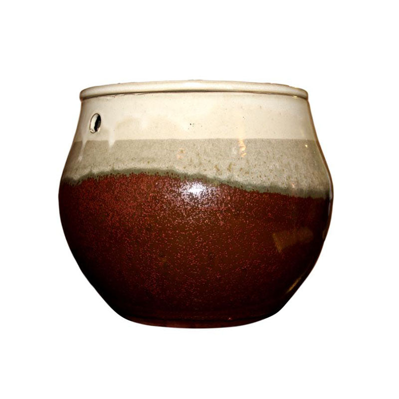 10" Honey Cream Over Copper Teardrop Self Watering Pot