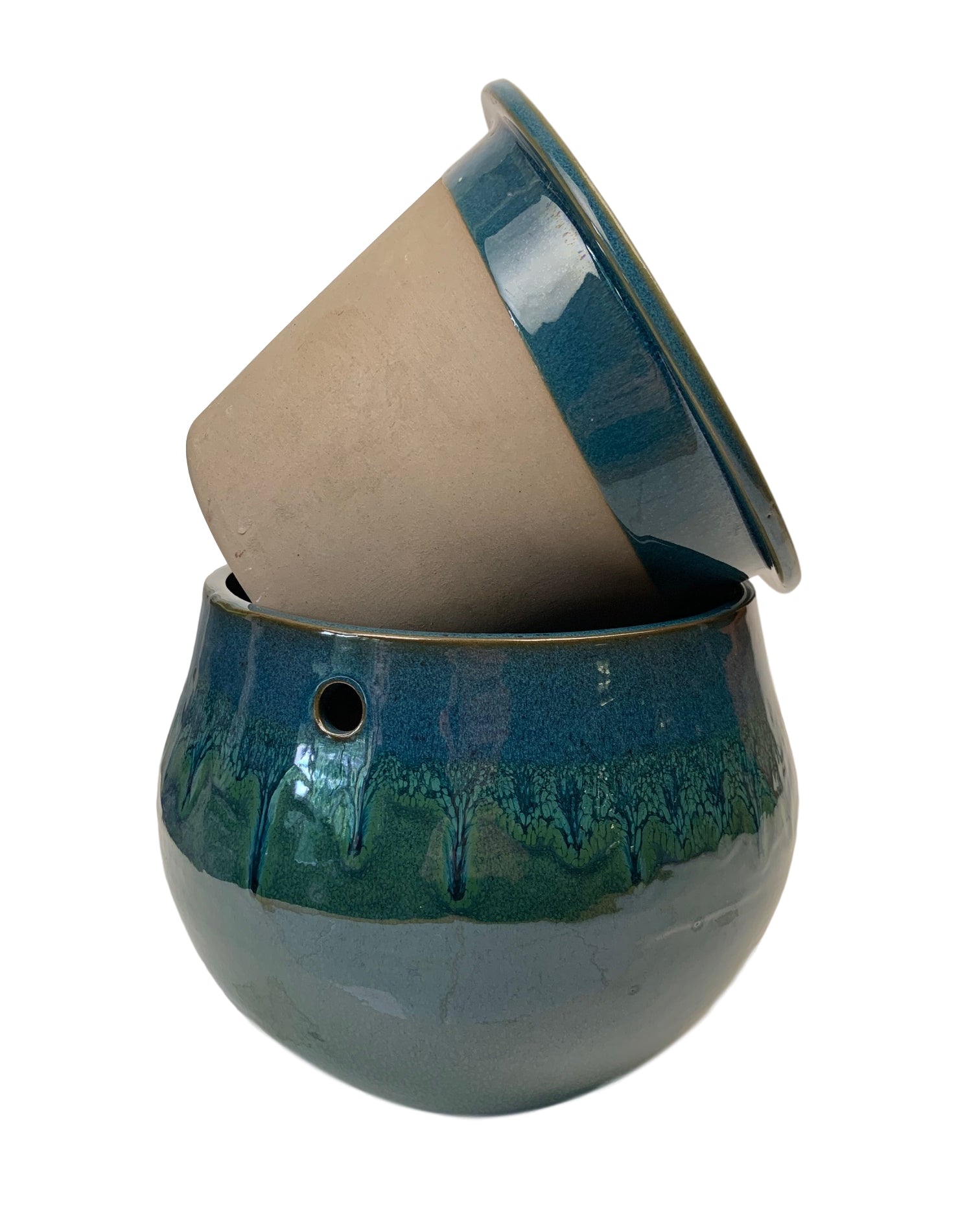 This spectacularly detailed African violet pot will make a beautiful addition to your display. It is carefully hand sculpted, and has a glaze that is as exquisite as the craftsmanship of each pot. We love the classic shape and detail displayed with these wonderful pots. The rich and deep glaze will complement the vibrant colors of any exotic African violet.