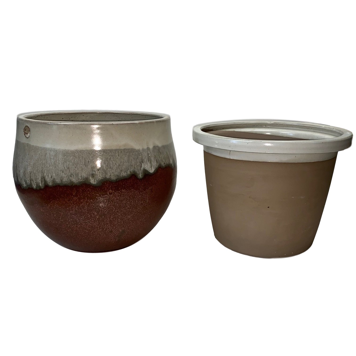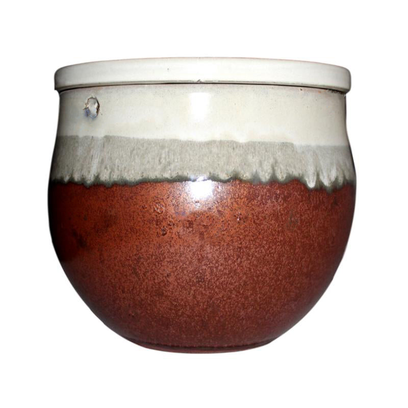 12" Honey Cream Over Copper Teardrop Self Watering Pot