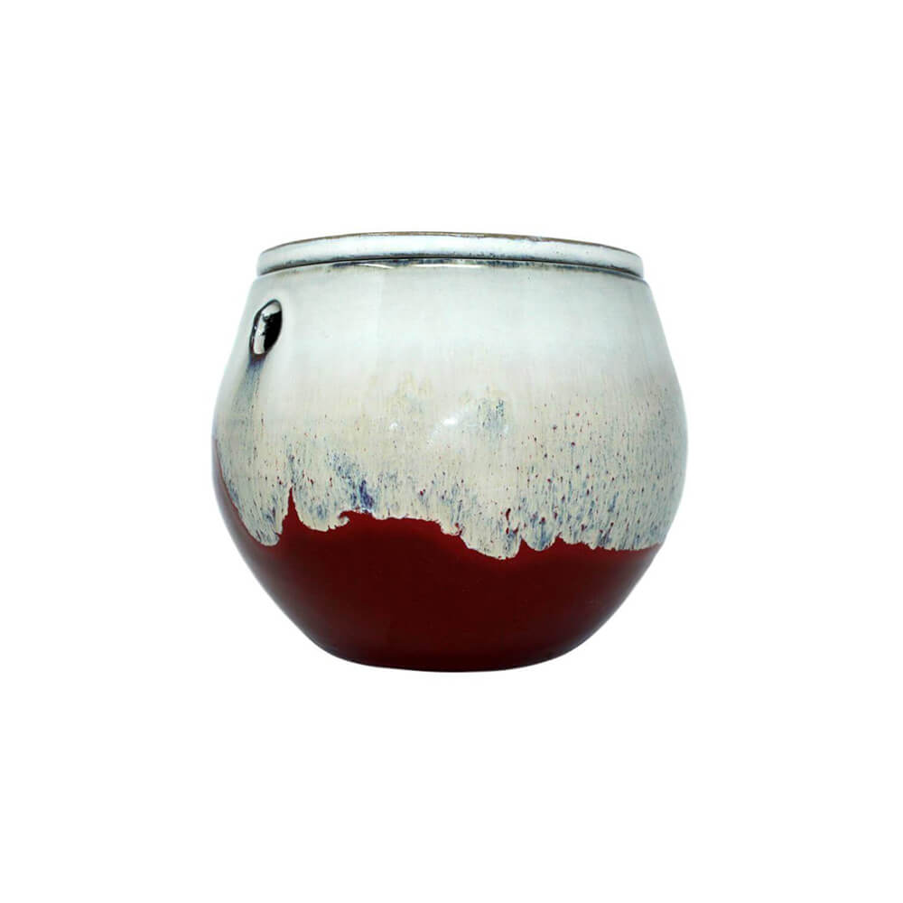 6" Cream Over Garnet Teardrop Self Watering Pot