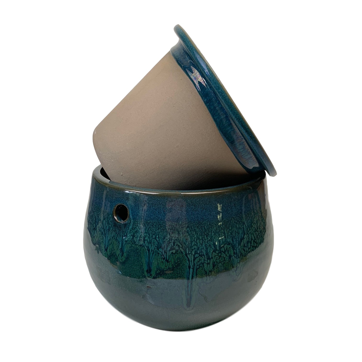 8" Teal Ocean Teardrop Self Watering Pot