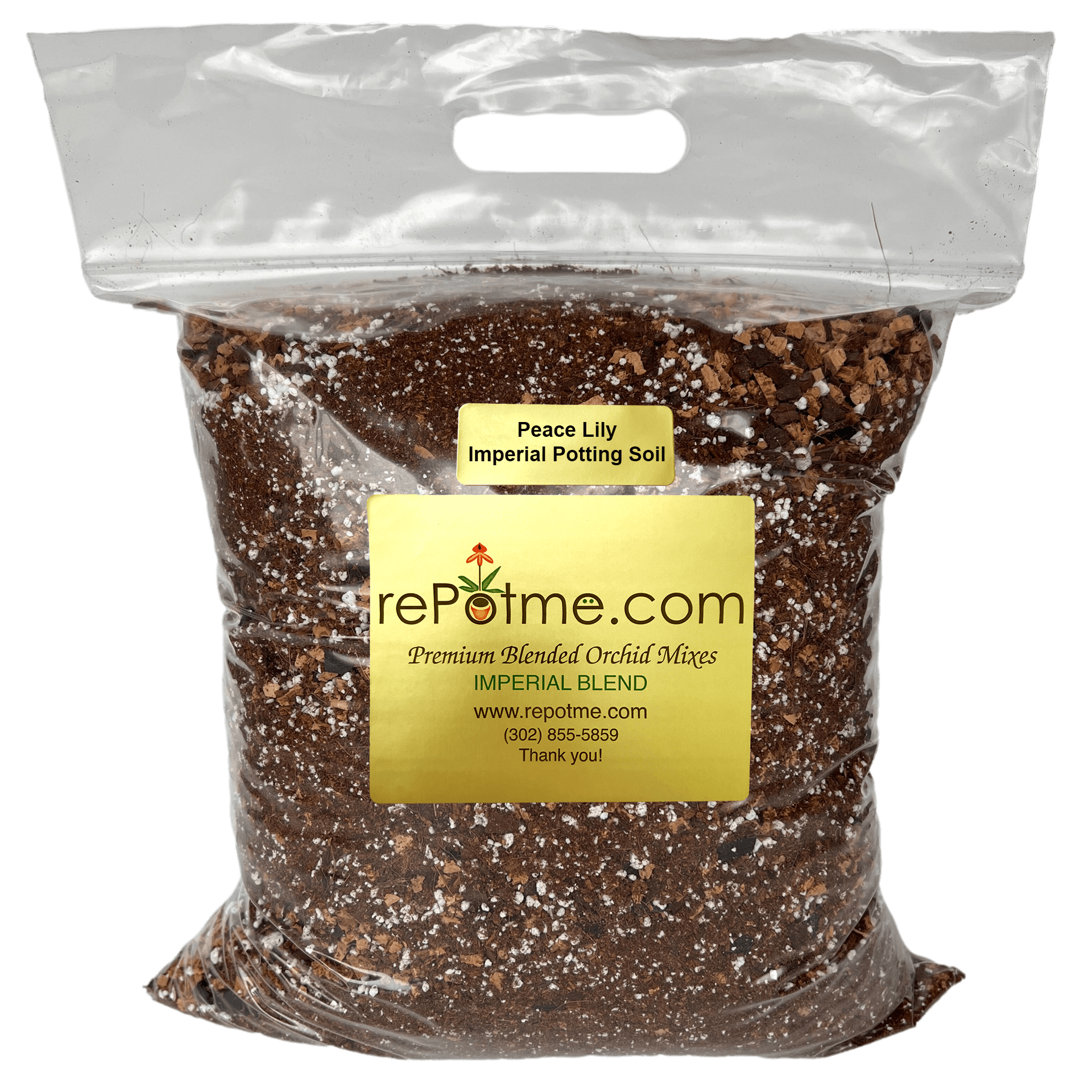 Peace Lily Imperial Potting Soil Mix by rePotme is a free draining mix that is ideal for all Peace Lily plants. The base of the potting mix is coir, imported from Sri Lanka, which is a clean, easy to use medium derived from coconut husk. Small sponge rock and small cork are then added to help break up the mix and add additional drainage. Monterey Pine Bark and Charcoal benefit the soil, naturally releasing nutrients over time. Our Peace Lily Imperial Potting Soil Mix is ready to use straight from the bag and compatible with any plant pot. Designed specifically for the lush, tropical Peace Lily (Spathiphyllum), this mix offers the perfect balance for these striking indoor plants.