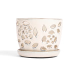These roomy ceramic orchid pots are noted for their spectacular intricate floral design and beautiful glazes. One full side is done in the flower design and the other side is solid so they can be displayed either way. With great drainage into the attached drip tray and an open cut-out pattern, these pots will provide a perfect home for your prized plants.