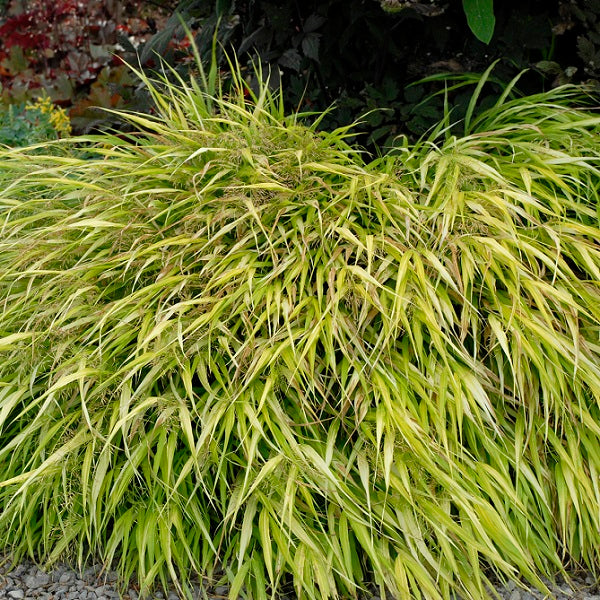 Although insignificant, plumes are tan and emerge late summer to early fall. Hakonechloa is most at home in shaded, woodland environments where the soil is rich and loamy. This grass will not grow in poorly drained soil, heavy clay, or very dry soils. Part to full shade is best; full hot sun tends to scorch the leaves.