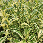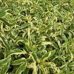 EUPATORIUM fortunei 'Pink Frost'. 30-36" tall, 24-36" spread, part shade-full sun, late summer-early fall bloom. Unique variegated foliage! Dark green leaves are splashed with creamy yellow edges. The small deep pink flower clusters really stand out against the beautiful foliage. Attracts butterflies. Deer resistant. Zones 4-8. Potted in 3" pot.