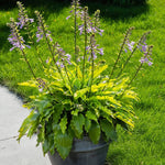 Medium. 13" tall, 20" spread, part-full shade, lavender flowers. Very shiny leaves for a spectacular show in your garden. Reflects even the smallest amount of light. The rippled, long, green leaves will surely get noticed for their beautiful appearance. Attracts hummingbirds. Zones 3-9. Bareroot & wrapped in high quality gardening mix.
