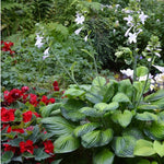 Tall. 22" tall, 38" spread, part-full shade, pale lavender flowers. Fragrant. AHG 2002 Hosta of the Year! Huge, glossy, apple green leaves are surrounded by streaked, dark green leaf margins. Leaf centers become brighter gold in the summer and when exposed to more sunlight, while the margins remain dark green. Exhibits greater sun tolerance. Very fragrant! Attracts hummingbirds. Zones 3-9. Bareroot & wrapped in high quality gardening mix.