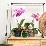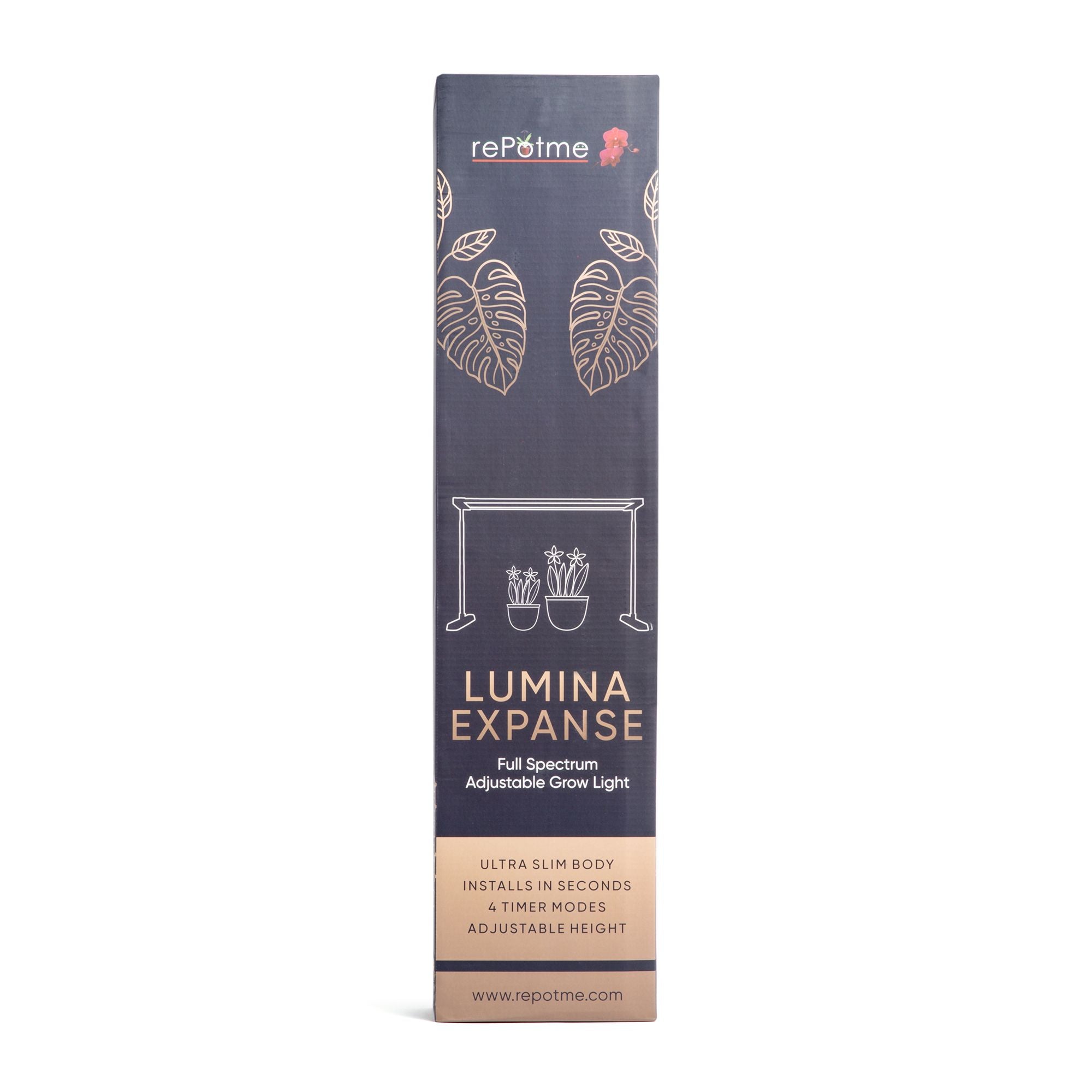 Meet the Lumina Expanse, a full spectrum grow light designed to accommodate and foster the growth of multiple plants simultaneously. With an ultra-slim body and quick installation in under a minute, this light system showcases an elegant blend of style and functionality. Its unique telescoping arms provide adjustable heights, ranging from a minimum height of 20cm (about 8 inches) to a maximum height of 62cm (a little over 24 inches), ensuring optimal illumination for plants of various sizes.