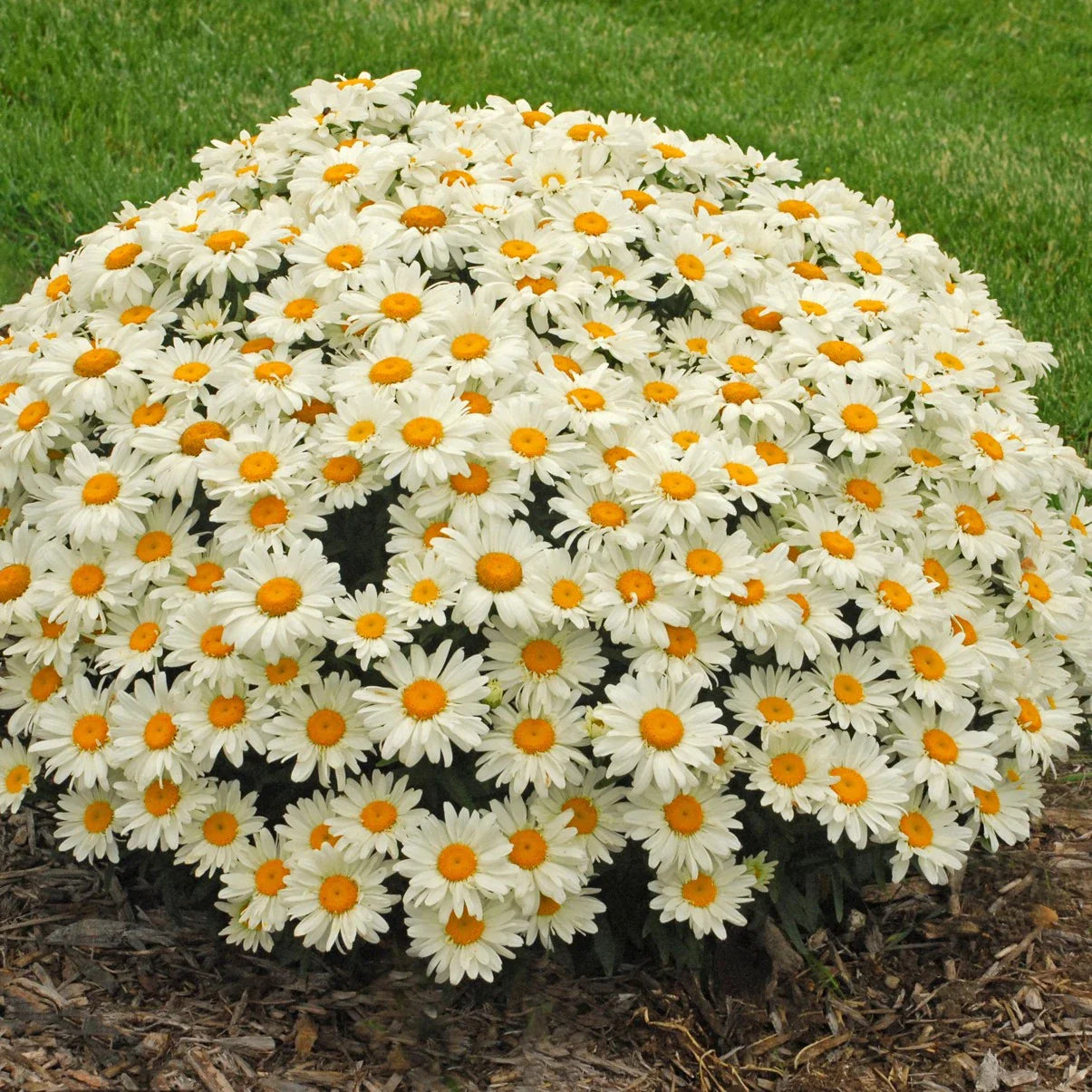 LEUCANTHEMUM 'Mixed'. 12-24" tall, 18-24" spread, full sun, early-late summer bloom. Our choice of color and variety. All labeled. An all-time favorite for the perennial border. Zones 5-9. Potted in 3" pot. **Note-item pictured may not be the same as the item you receive, our choice of color and variety**