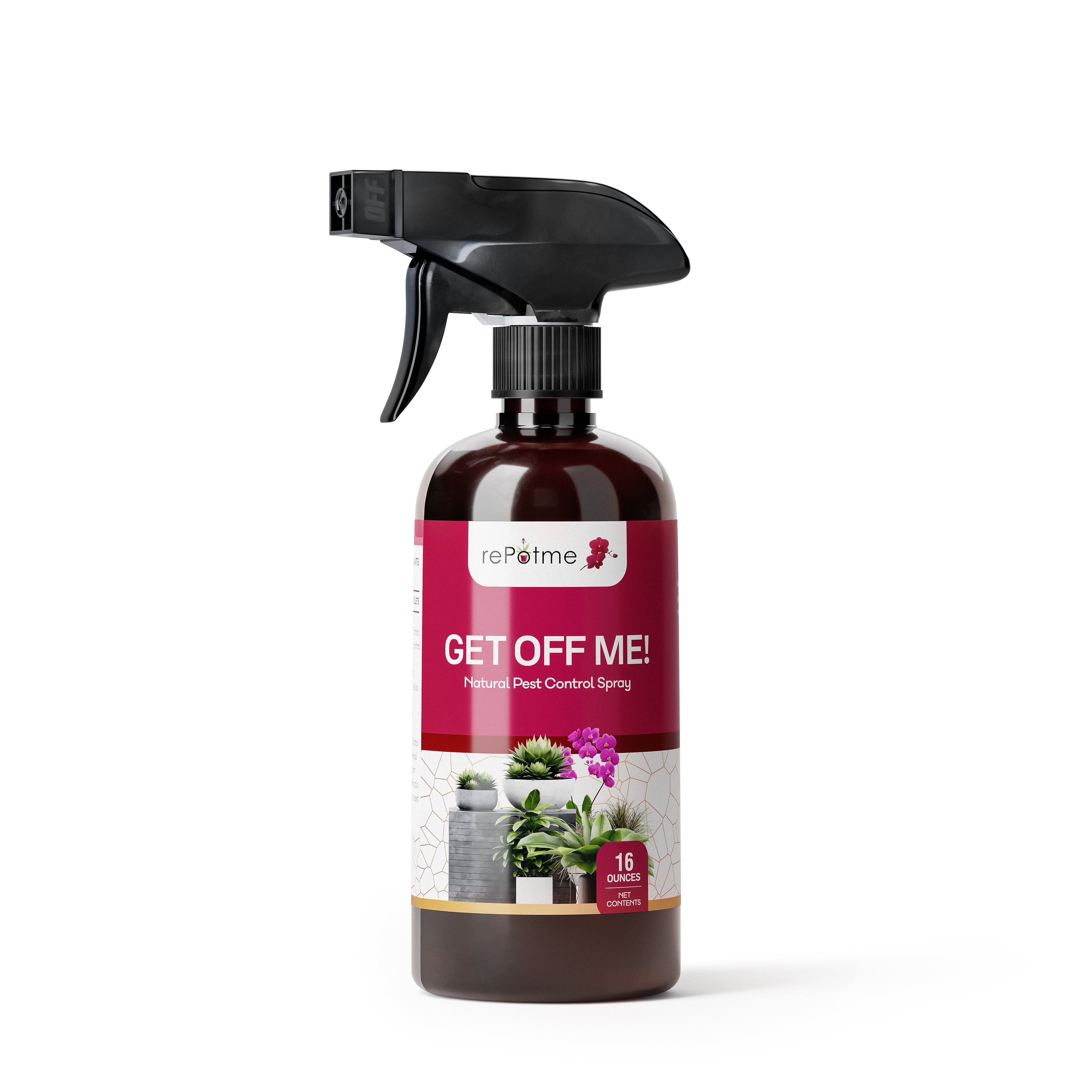 GET OFF ME! Natural Pest Control Spray from rePotme is used to control common insect pests on orchids while also protecting the plant from fungus and bacterial problems. GET OFF ME! spray is a natural water based cinnamon herbal infusion with a few drops of baby shampoo as a surfactant. It can be used indoors or outdoors and is a safe alternative to other bug sprays which may contain harmful chemicals. For extra power against bugs, add Isopropyl (rubbing) alcohol to your GET OFF ME! in a 50/50 mixture in your spray bottle.