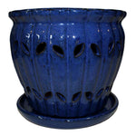 10" Midnight Blue Pinwheel Fluted Ceramic Planter