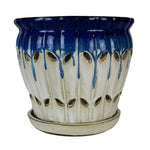 8" Cobalt Blue Over Cream Pinwheel Fluted Ceramic Planter