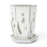 4" x 6" White Diamond Fluted Hexagon Ceramic Orchid Pot