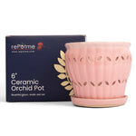 Our spectacular hand glazed ceramic orchid pots are available in five generous diameters, 6”, 7”, 8”, 9”, and 10”.  These are no ordinary ceramic orchid pots, as they are custom made for us and designed to fit with our free included clear plastic inserts.  The inserts help protect that incredible glazed finish while channeling water to the attached drip tray while still allowing light to reach roots for photosynthesis.  The included inserts keep roots from protruding through the side openings of the ceramic pot as well, and make it easy to lift the plant out to examine roots systems and moisture levels.  Each of these works of art are glazed inside and out and the base comes with soft pads attached to protect surfaces and furniture.  Stunningly beautiful, with a deep and rich glaze, these gorgeous pots will protect and show off your wonderful plants for many years to come.