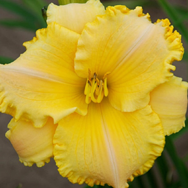 (Klehm) T 32" M D 6" bloom. This daylily is a yellow-peach blend with a golden radiating throat and a lighter midrib. The edges are heavily ruffled and gently recurved. Full Sun. Attracts butterflies and is bee friendly. Zones 3-9. 2/3 fan division, bareroot.