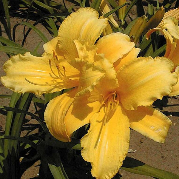 (Fay) T 26" E SE 6" bloom. Very wide yellow petals; heavily ruffled; extremely heavy texture. H.M. 1970. President's Cup 1972. A.M. 1973. S.M. 1978. Richard C. Peck Memorial Medal 1974. Full Sun. Attracts butterflies and is bee friendly. Zones 3-9. 2/3 fan division, bareroot.