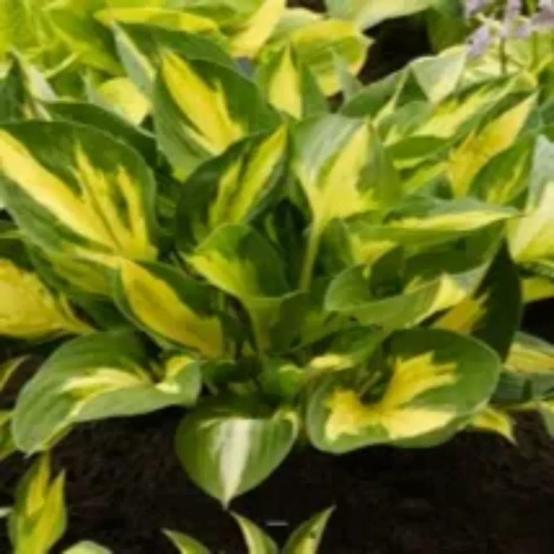 Tall. 18-20" tall, 28-32" spread, part-full shade, lavender flowers. Centers of soft yellow are framed by wide, dark green borders. The sturdy leaves will form a vigorous dense mound decorated in summer with pale lavender flowers. Attracts hummingbirds. Zones 3-9. Bareroot & wrapped in high quality gardening mix.