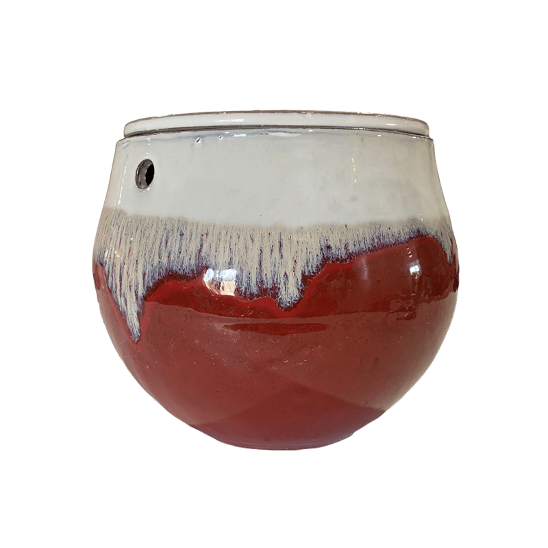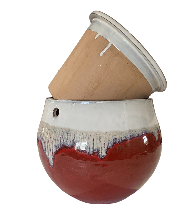 10" Cream Over Garnet Teardrop Self Watering Pot