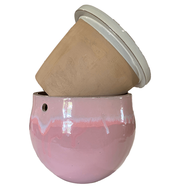 12" Cream Over Cotton Candy Teardrop Self Watering Pot