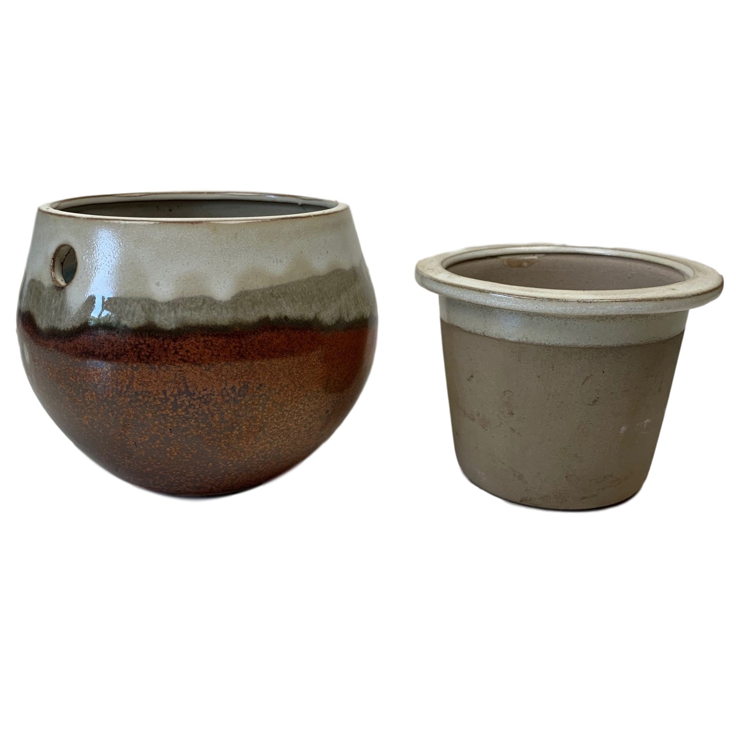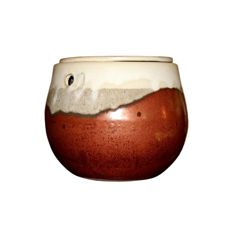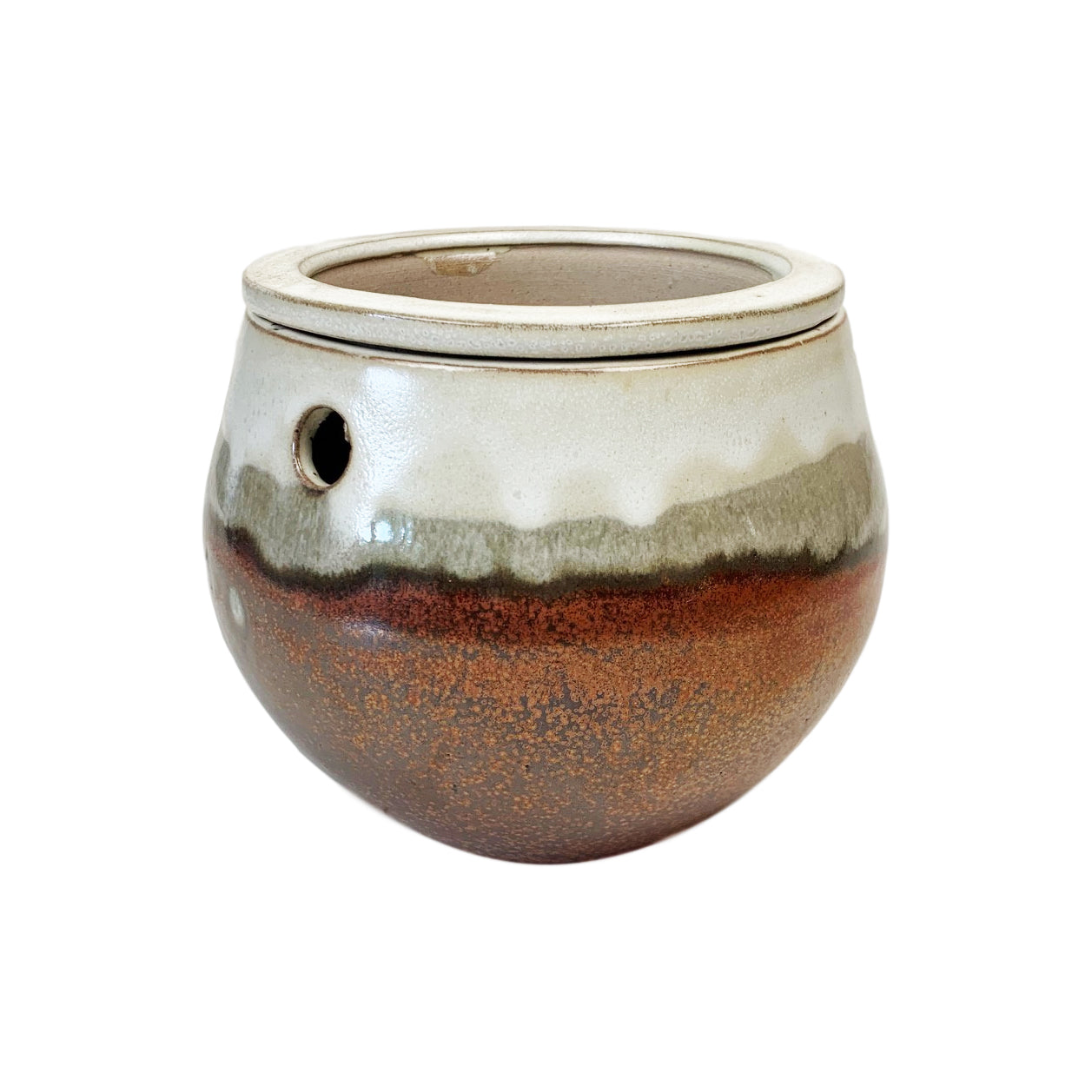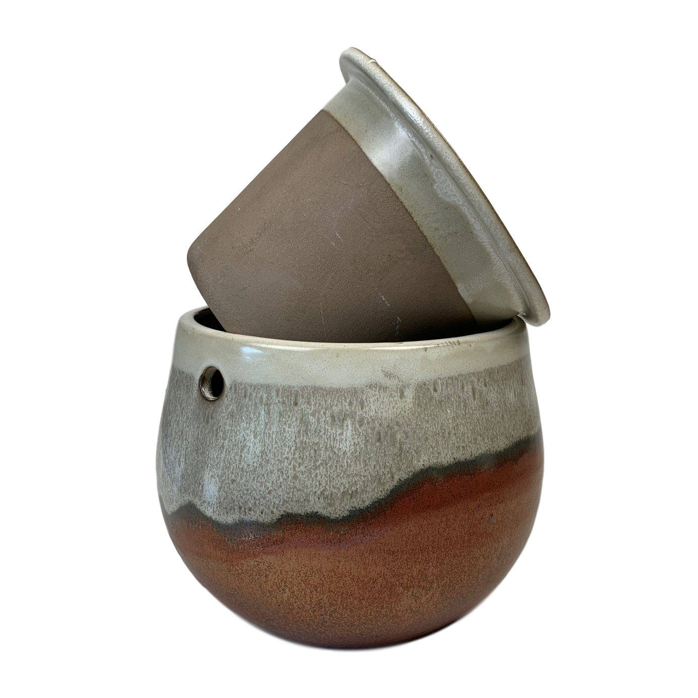 8" Honey Cream Over Copper Teardrop Self Watering Pot