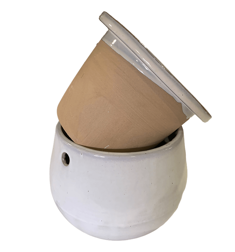 The inner pot is 5.5" wide, while the outer pot has a generous 8" wide reservoir for self-watering and is easy to clean.