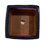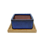 4" Midnight Blue Square Ceramic Succulent Pot With Decorative Bamboo Saucer