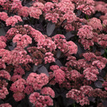 SEDUM 'Dolseb’ PP33994. 20" tall with equal spread, full sun, late summer-early fall bloom. Elegant, shiny, black leaves that are crowned by a multitude of red and magenta pink flowers. Disease resistant. Attracts butterflies & is bee friendly. Deer resistant. Zones 5-9. Potted in 3" pot.