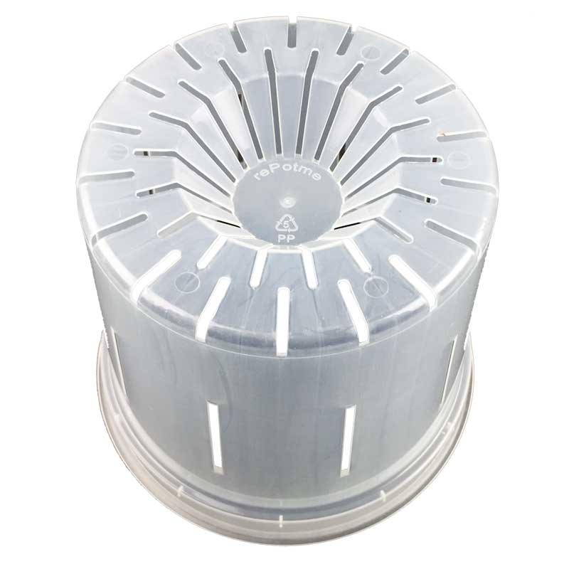 These remarkable Super Slotted Pots with side and bottom slots increase drainage and aeration around roots. Each has 10 slots in the sides, 18 more slots at the base and another 18 slots which rise up to form the elevated interior core. Designed by rePotme to maximize air flow and drainage, these terrific pots are as effective as they are beautiful. We call them "Super Slot Pots" because they have more drainage capacity than any single pot we carry. They come with a substantial reinforced outer rim at the top and are made with UV protection built in for increased durability when exposed to the sun.