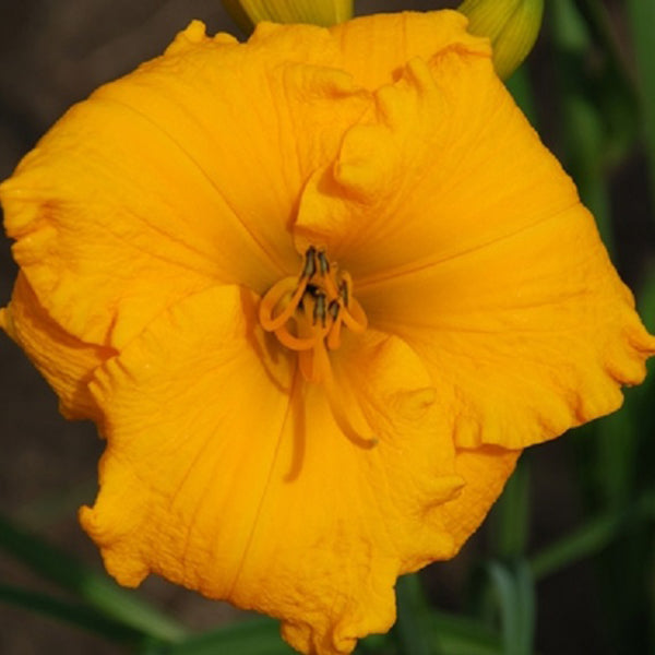 (Klehm) T 30" EM D F 6" bloom. Wide-petalled, recurved, intense orange-gold with small green throat and good ruffling. Slightly fragrant. Full Sun. Attracts butterflies and is bee friendly. Zones 3-9. 2/3 fan division, bareroot.